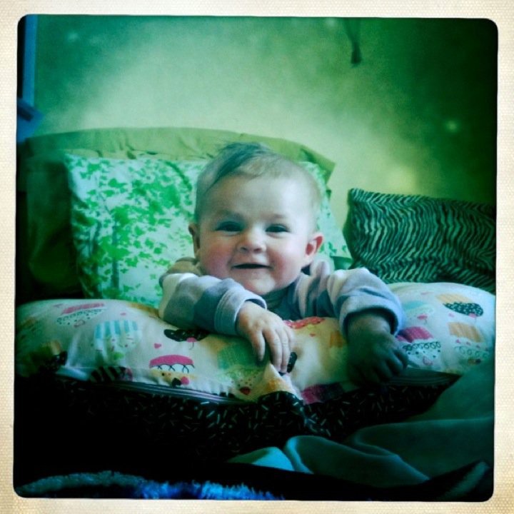 So we gave up and went out to the living room for some tummy time for Ky and some blogging time for mama.